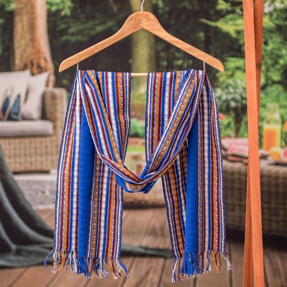 Handloomed Striped and Fringed Cotton Scarf from Guatemala 'Paths of Atitln' Item ID: 2671769064