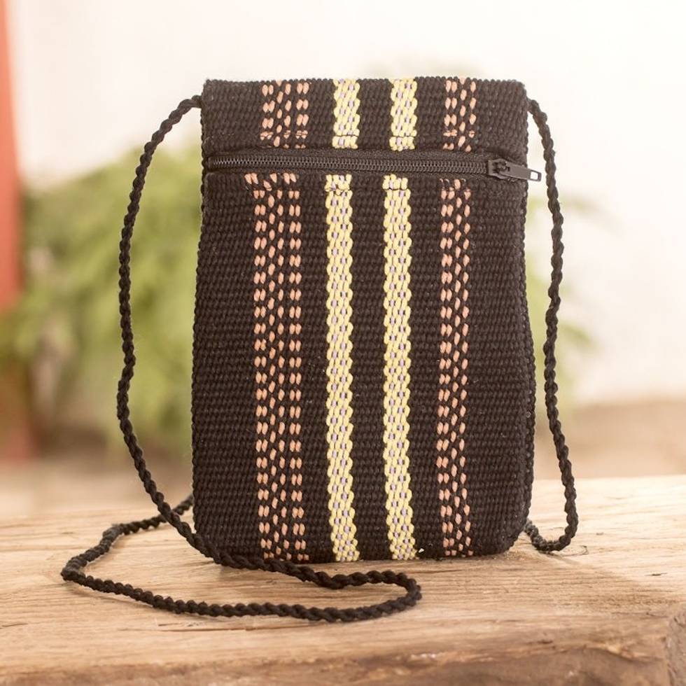 Handloomed Striped Cotton Sling with Zipper Closure 'Artisanal Lines' Item ID: 2671771431