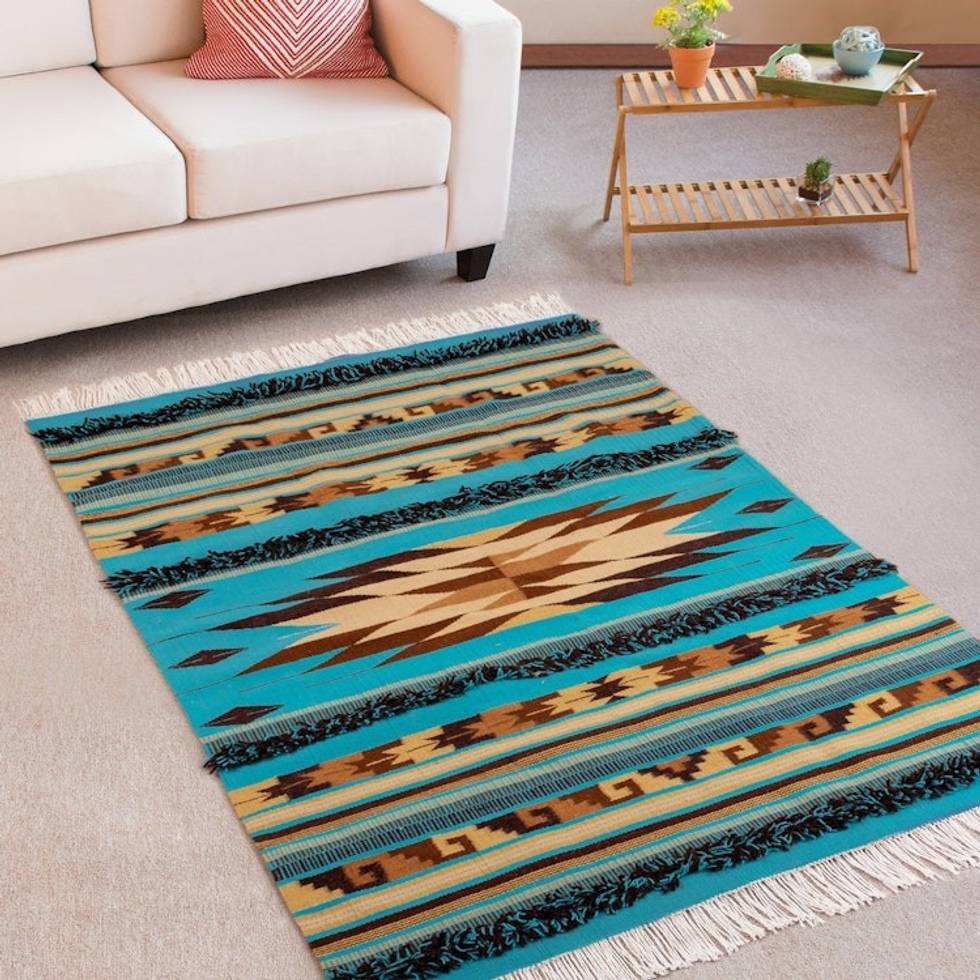 Handloomed Wool Rug with Geometric Motifs and Tassels 4x6 'Ancestral Winds' Item ID: 2671697986