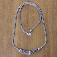 Handmade 18k Gold Accent Balinese Silver Chain Necklace 'Denpasar Night' Item ID: 2670221949