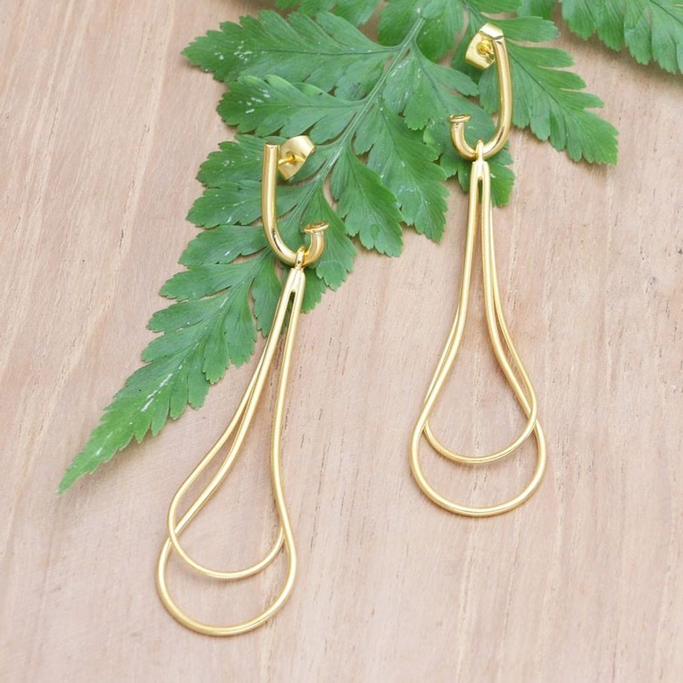 Handmade 18k Gold-plated Dangle Earrings from Indonesia 'Throw a Curve' Item ID: 2671748506