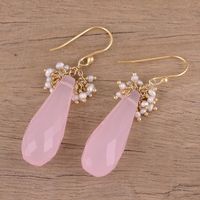 Handmade 22k Gold Plated Rose Quartz Cultured Pearl Earrings 'Devoted Rose' Item ID: 2669924519
