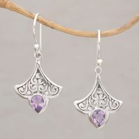 Handmade 925 Sterling Silver Amethyst Dangle Earrings Bali 'Slow Dance' Item ID: 2671734523