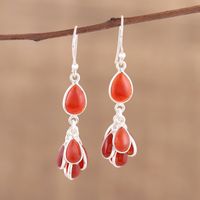 Handmade 925 Sterling Silver Carnelian Earrings India 'Fiery Bunch' Item ID: 2671791164