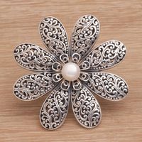 Handmade 925 Sterling Silver Cultured Pearl Floral Brooch 'Starlight Flower' Item ID: 2669923054