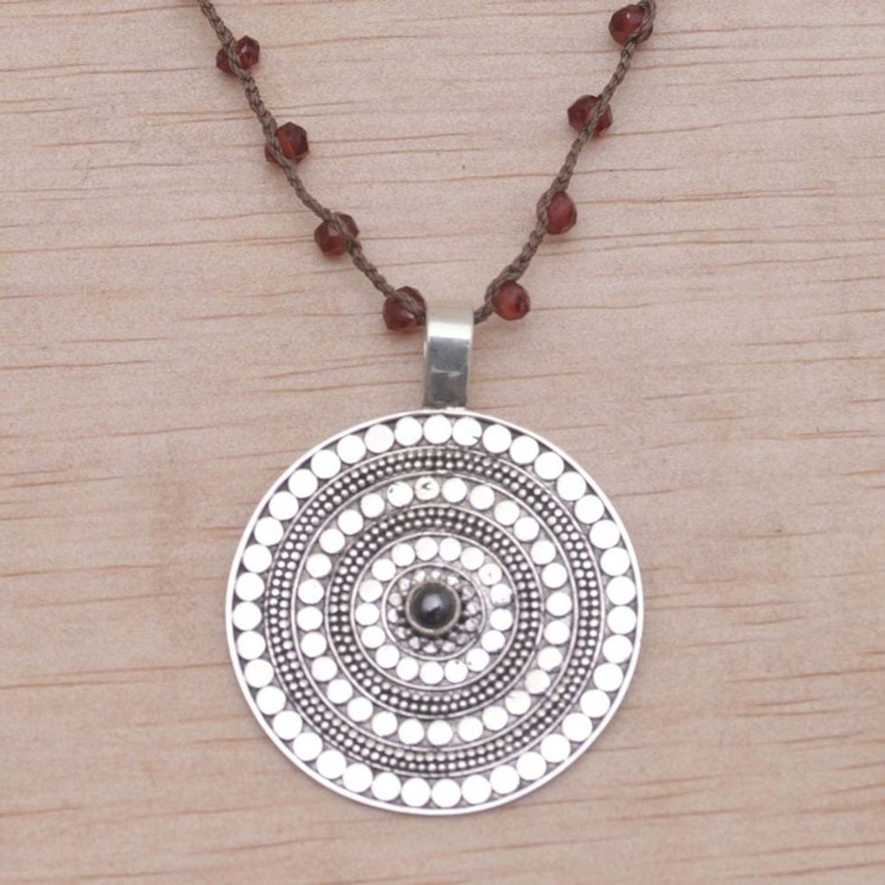 Handmade 925 Sterling Silver Garnet Cord Pendant Necklace 'Shining Shield in Red' Item ID: 2671734416