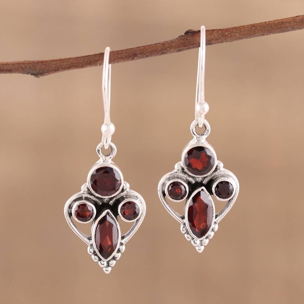 Handmade 925 Sterling Silver Garnet Earrings India 'Eternal Ecstasy' Item ID: 2669956406