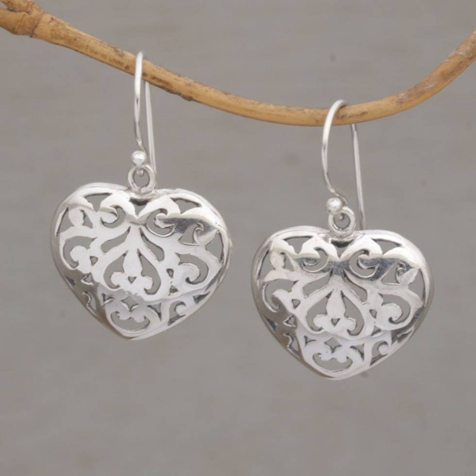 Handmade 925 Sterling Silver Heart Shaped Dangle Earrings 'Caged Heart' Item ID: 2671733545