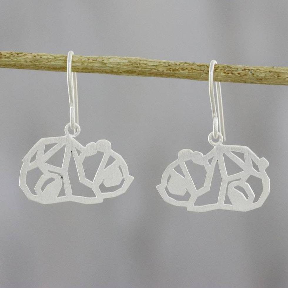 Handmade 925 Sterling Silver Panda Dangle Earrings Thailand 'Little Panda' Item ID: 2676651881