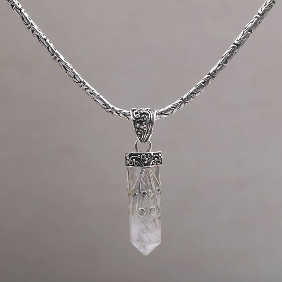 Handmade 925 Sterling Silver Quartz Pendant Chain Necklace 'Crystalline Fern' Item ID: 2671735741