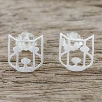 Handmade 925 Sterling Silver Stud Earrings Dog Face Thailand 'Hair of the Dog' Item ID: 2671800739