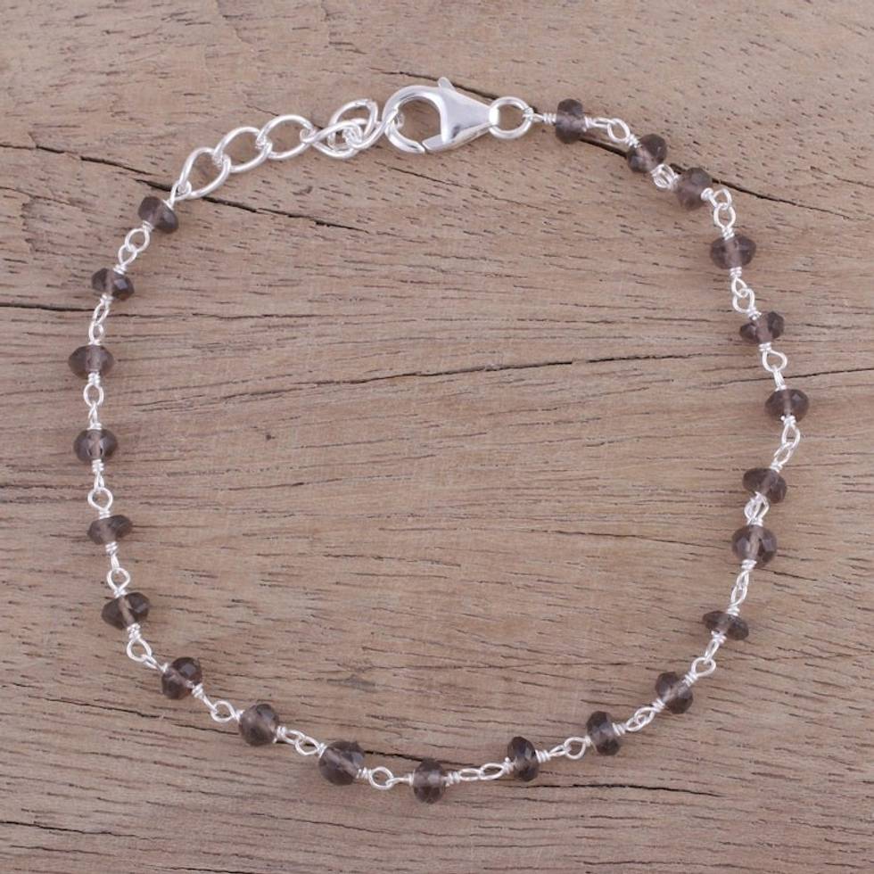 Handmade Adjustable Smoky Quartz Link Bracelet from India 'Beautiful Saga' Item ID: 2669925315