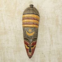 Handmade African Colorful Sese Wood Wall Mask from Ghana 'Colorful Villager' Item ID: 2671803536