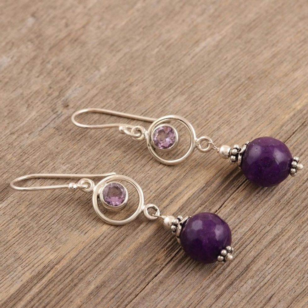 Handmade Agate and Amethyst Dangle Earrings from India 'Purple Chill' Item ID: 2671789474