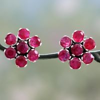 Handmade Agate and Sterling Silver Floral Button Earrings 'Magenta Blossom' Item ID: 2669943769