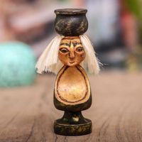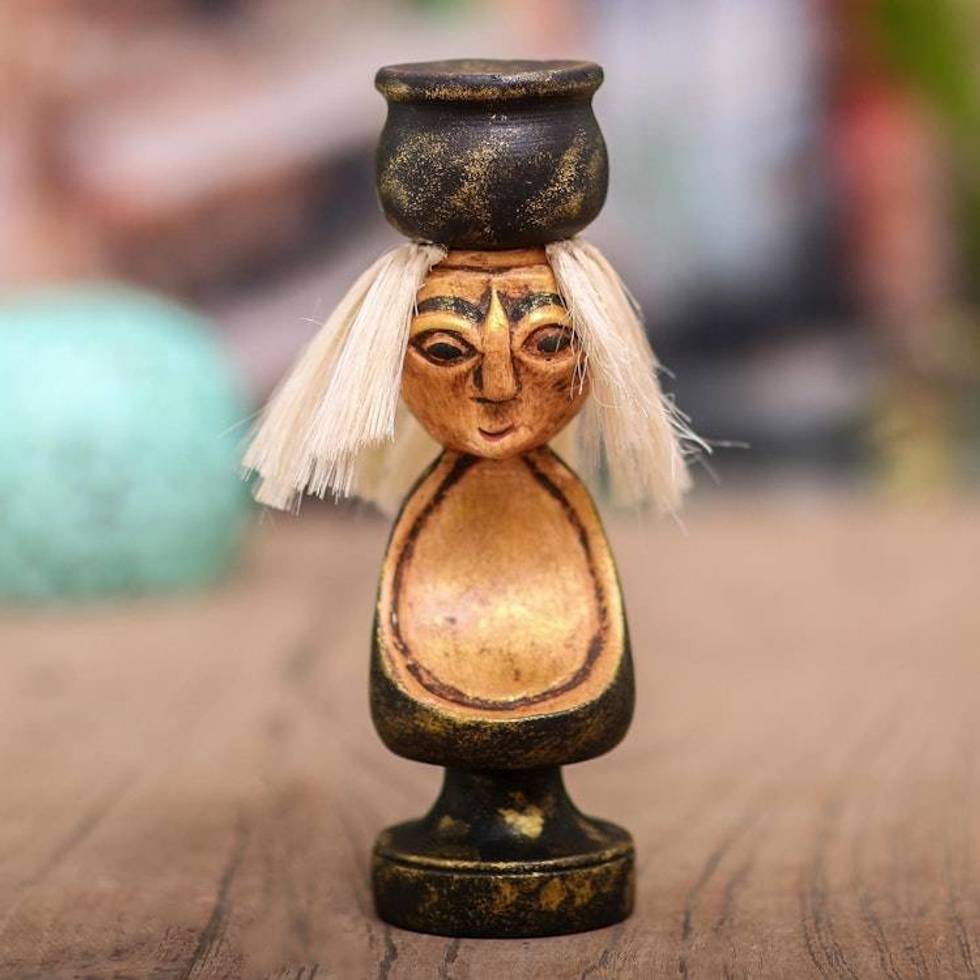 Handmade Albesia Wood Grandmother Statuette 'Caring Grandmother' Item ID: 2676667758