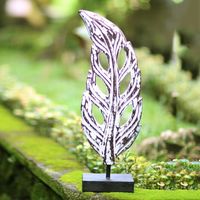 Handmade Albesia Wood Leaf Statuette 'Lucky Leaves in White' Item ID: 2671746538