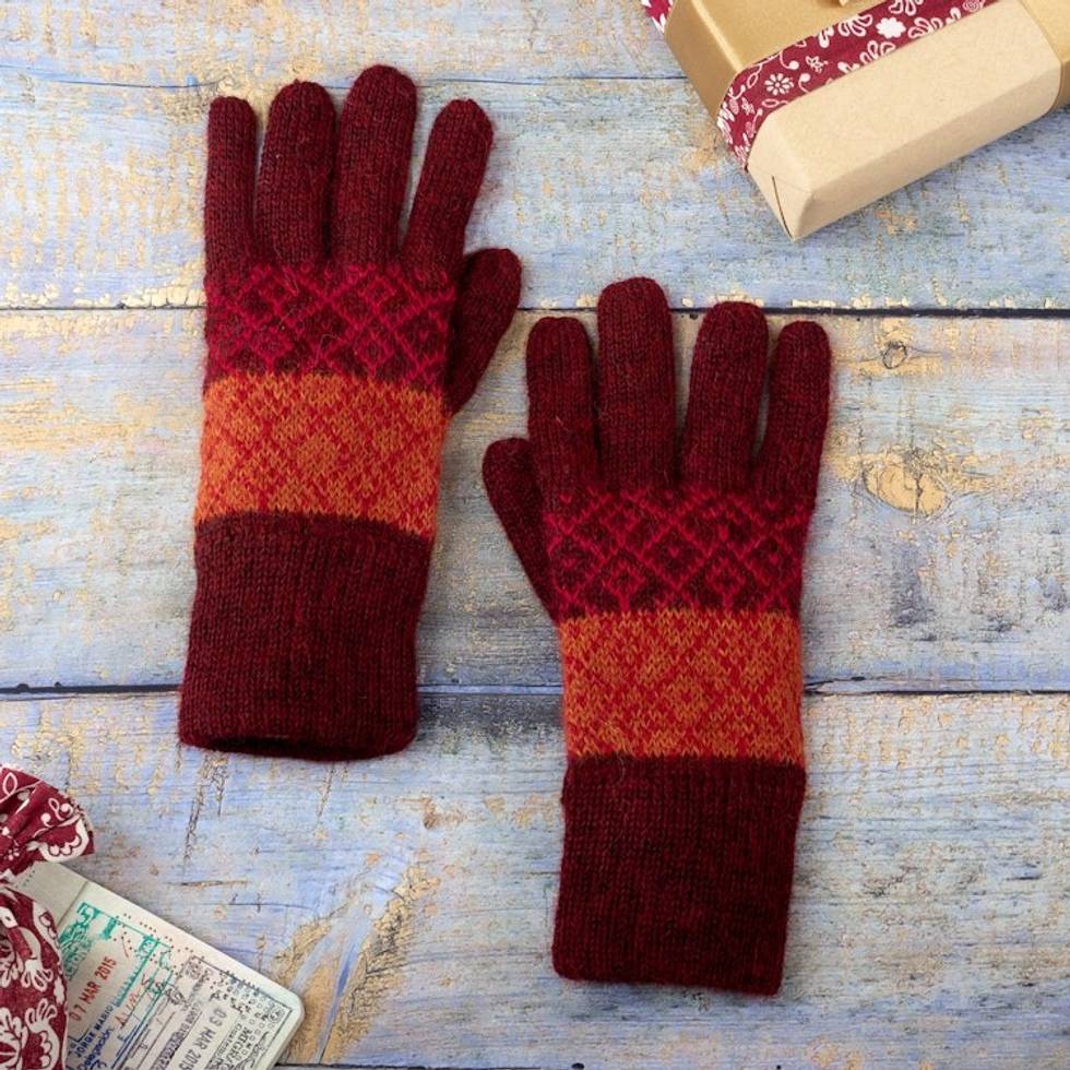 Handmade Alpaca Wool Patterned Gloves 'Diamond of the Andes' Item ID: 2669904192