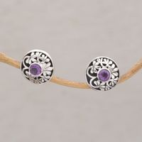 Handmade Amethyst 925 Sterling Silver Stud Earrings 'Enchantree' Item ID: 2671821437