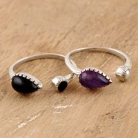 Handmade Amethyst and Black Onyx Wrap Rings Pair 'Magic Elixir' Item ID: 2671788859
