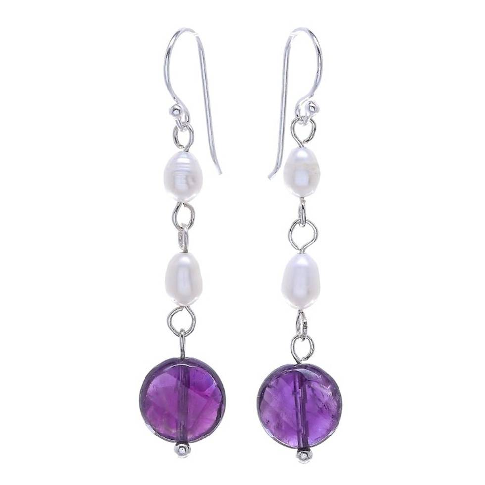 Handmade Amethyst and Cultured Pearl Dangle Earrings 'Purple Night' Item ID: 2671811485