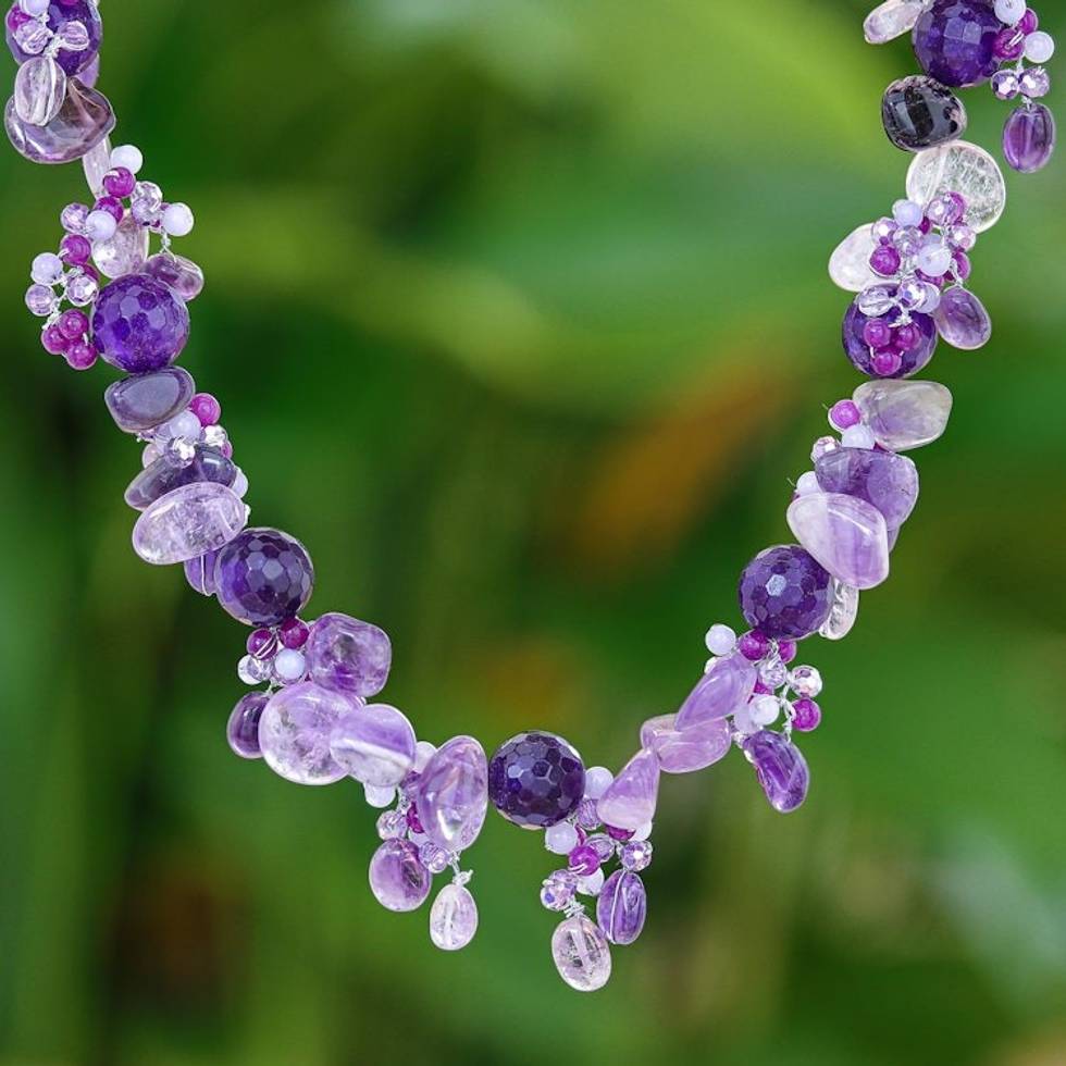 Handmade Amethyst and Quartz Beaded Necklace 'Violet Daydream' Item ID: 2671640809