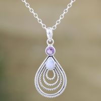 Handmade Amethyst and Rainbow Moonstone Pendant Necklace 'Radiate in Purple' Item ID: 2671787507
