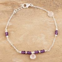 Handmade Amethyst and Rose Quartz Charm Bracelet 'Pink Morning' Item ID: 2676663878