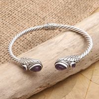 Handmade Amethyst and Sterling Silver Cuff Bracelet 'Royal Wings' Item ID: 2671745143
