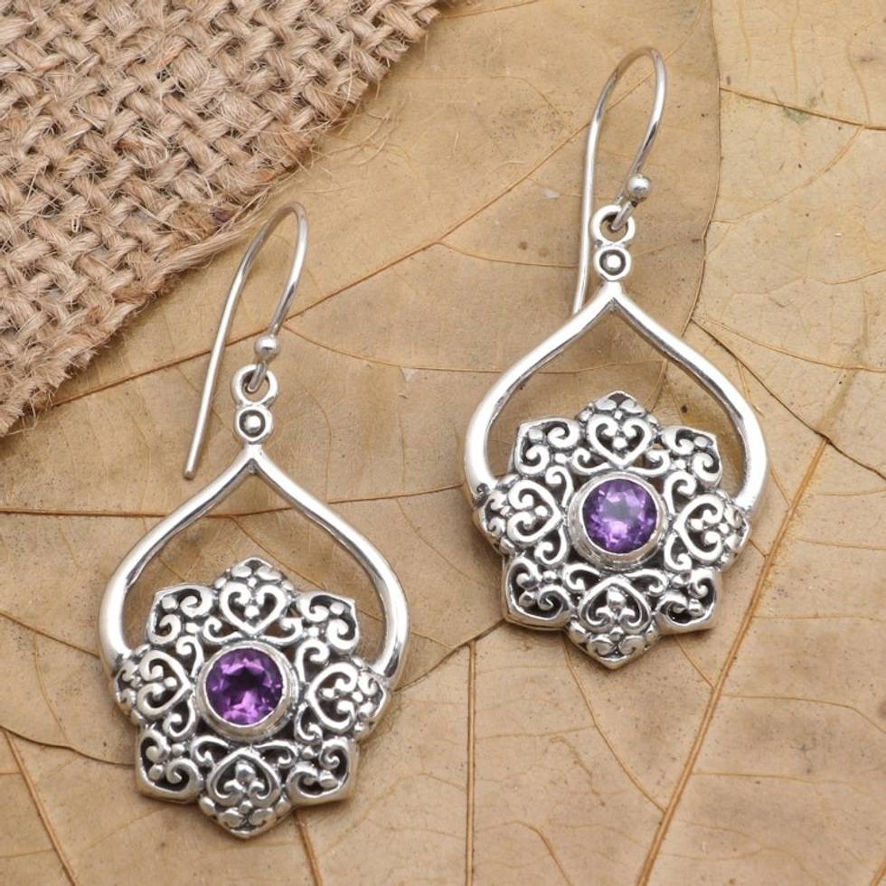 Handmade Amethyst and Sterling Silver Dangle Earrings 'February Flower' Item ID: 2669922325