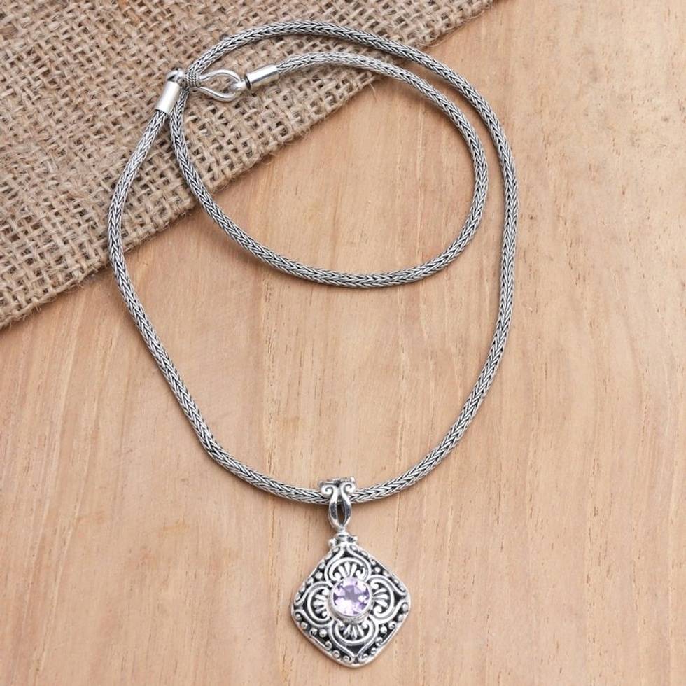 Handmade Amethyst and Sterling Silver Pendant Necklace 'Purple Frost' Item ID: 2671746712