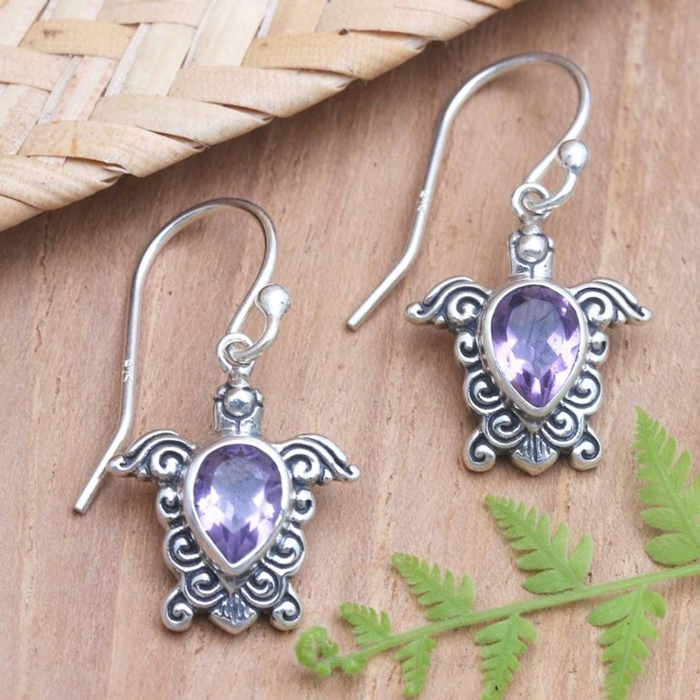 Handmade Amethyst Dangle Earrings with Turtle Motif 'Shell Game in Purple' Item ID: 2671746618
