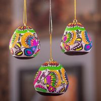 Handmade Andean Gourd Ornaments with Butterflies Set of 3 'Colorful Hope' Item ID: 2669891446
