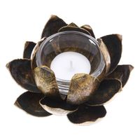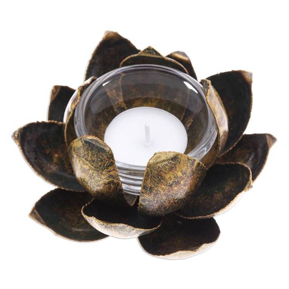 Handmade Antique Finished Steel Lotus Flower Tealight Holder 'Precious Lotus in Gold' Item ID: 2676648383