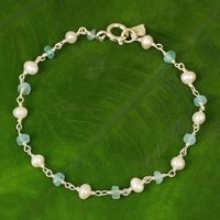 Handmade Apatite and Cultured Pearl Link Bracelet 'Morning Blue' Item ID: 2669927798