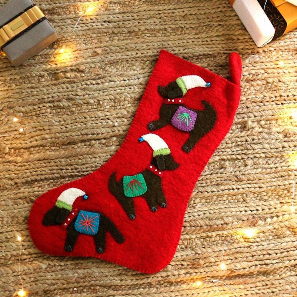 Handmade Applique Wool Felt Beaded Dog Christmas Stocking 'Festive Dogs' Item ID: 2671671063