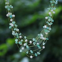 Handmade Aventurine and Cultured Pearl Waterfall Necklace 'Cascade in Mint' Item ID: 2671798252