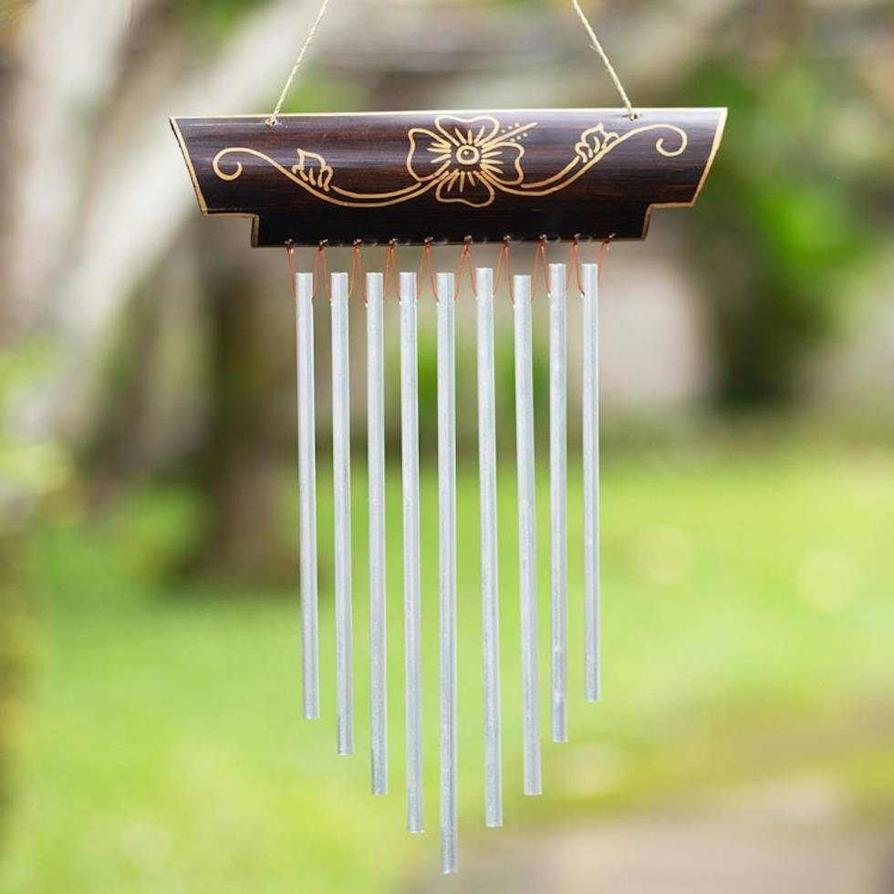 I made this purchase for myself. I love the carvings on the bamboo, the chimes are equally placed. The chimes make a faint tinkling, I've hung it over my kitchen sink window so I can look at the beauty and sound always.It was wrapped in many pieces of paper as to keep it safe without harm to it. It came with a note on a card with a photo of a glimpse of a unique destination in Indonesia. This ar... read more