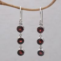 Handmade Balinese Garnet and Sterling Silver Dangle Earrings 'Everlasting Trinity' Item ID: 2671735667