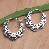 Handmade Balinese Sterling Silver Hoop Earrings 'Love and Desire' Item ID: 2669921414