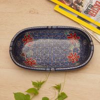 Handmade Batik Oblong-Shaped Blue Pule Wood Decorative Bowl 'Water Batik' Item ID: 2676659062