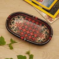 Handmade Batik Oblong-Shaped Red Pule Wood Decorative Bowl 'Fire Batik' Item ID: 2671764510