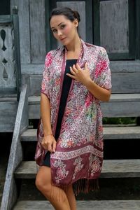 This absolutely gorgeous shawl is made from some of the finest silk I've ever had the privilege to touch. It is so soft and light, yet sturdy and the batikking is impeccable! I love the black version, as it shows up the print so beautifully! It almost has a vintage Arts and Crafts feel to the pattern. Nice enough to display in one's home - the bedroom perhaps...? I have since thought of getting another color either for myself or a very good friend or family member...well worth it.