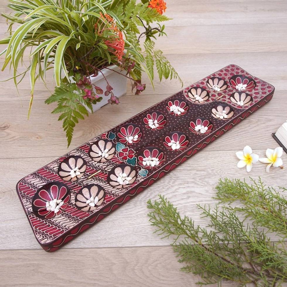 Handmade Batik Wood Mancala Game in Red 'Red Discernment Spirit' Item ID: 2671748677