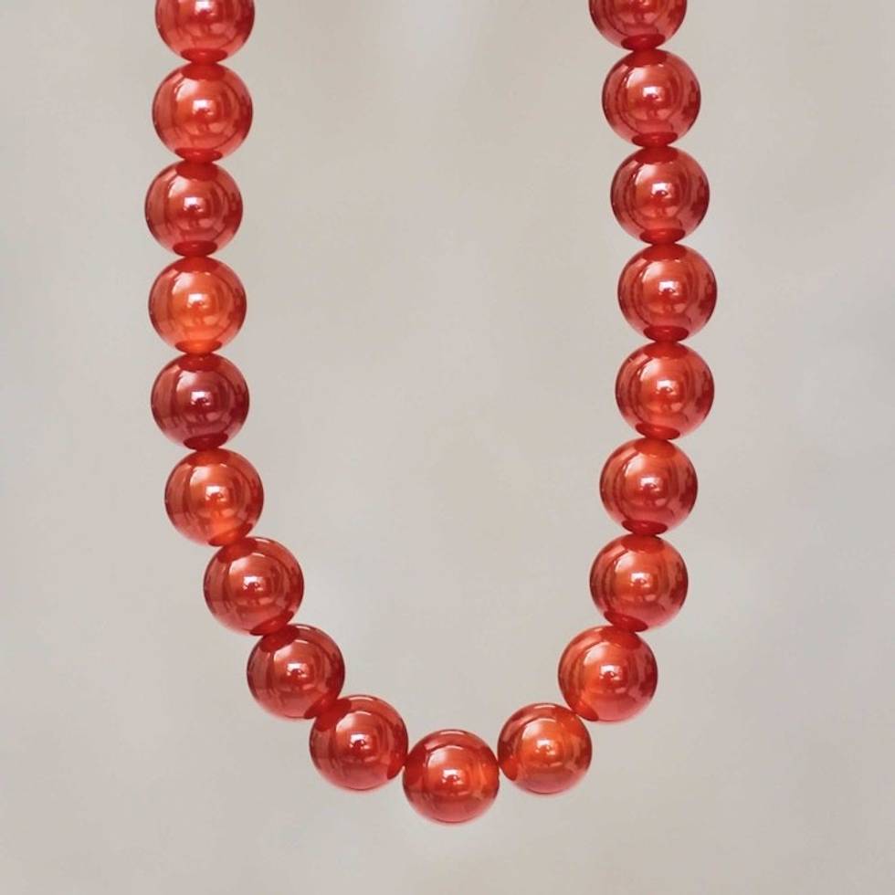 Handmade Beaded Carnelian Long Necklace from Peru 'Passionate Glow' Item ID: 2671691574