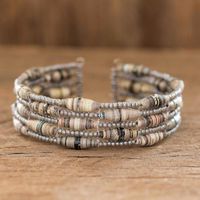 Handmade Beaded Cuff Bracelet 'Nature of Life in Grey' Item ID: 2669933882