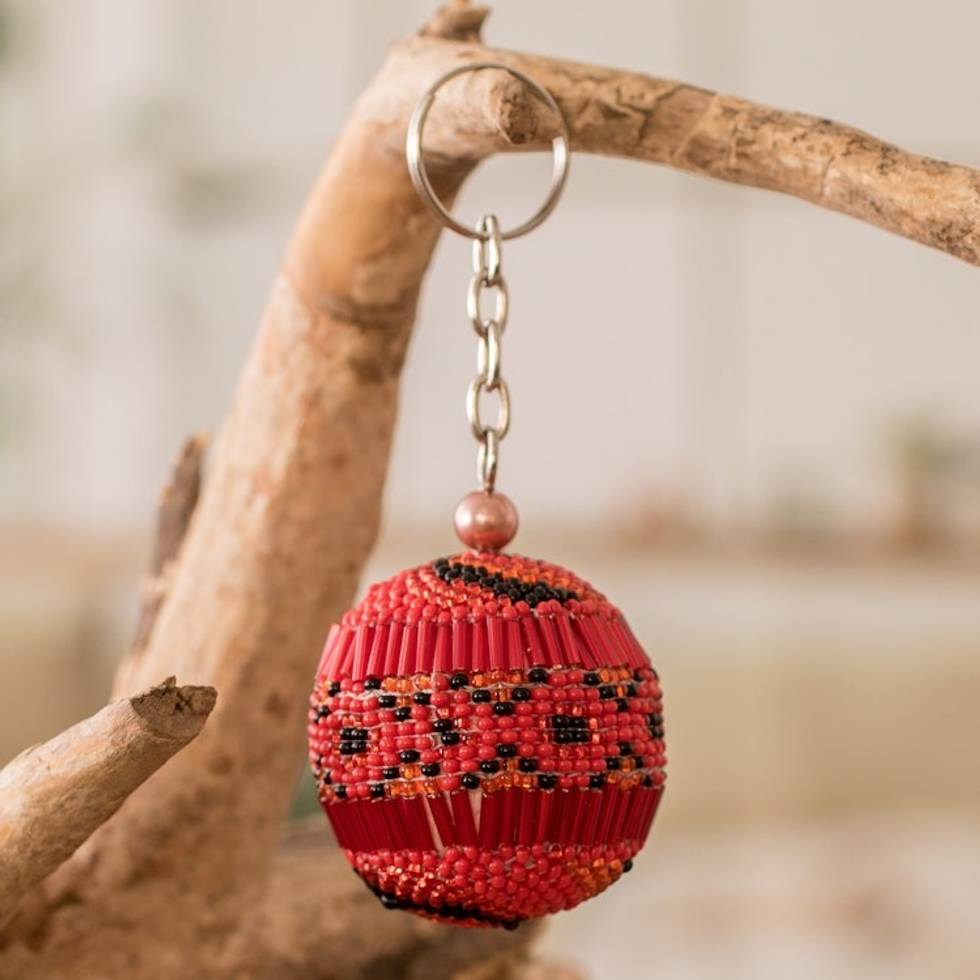 Handmade Beaded Keychain and Bag Charm in Red and Black 'Red Sphere' Item ID: 2671770029