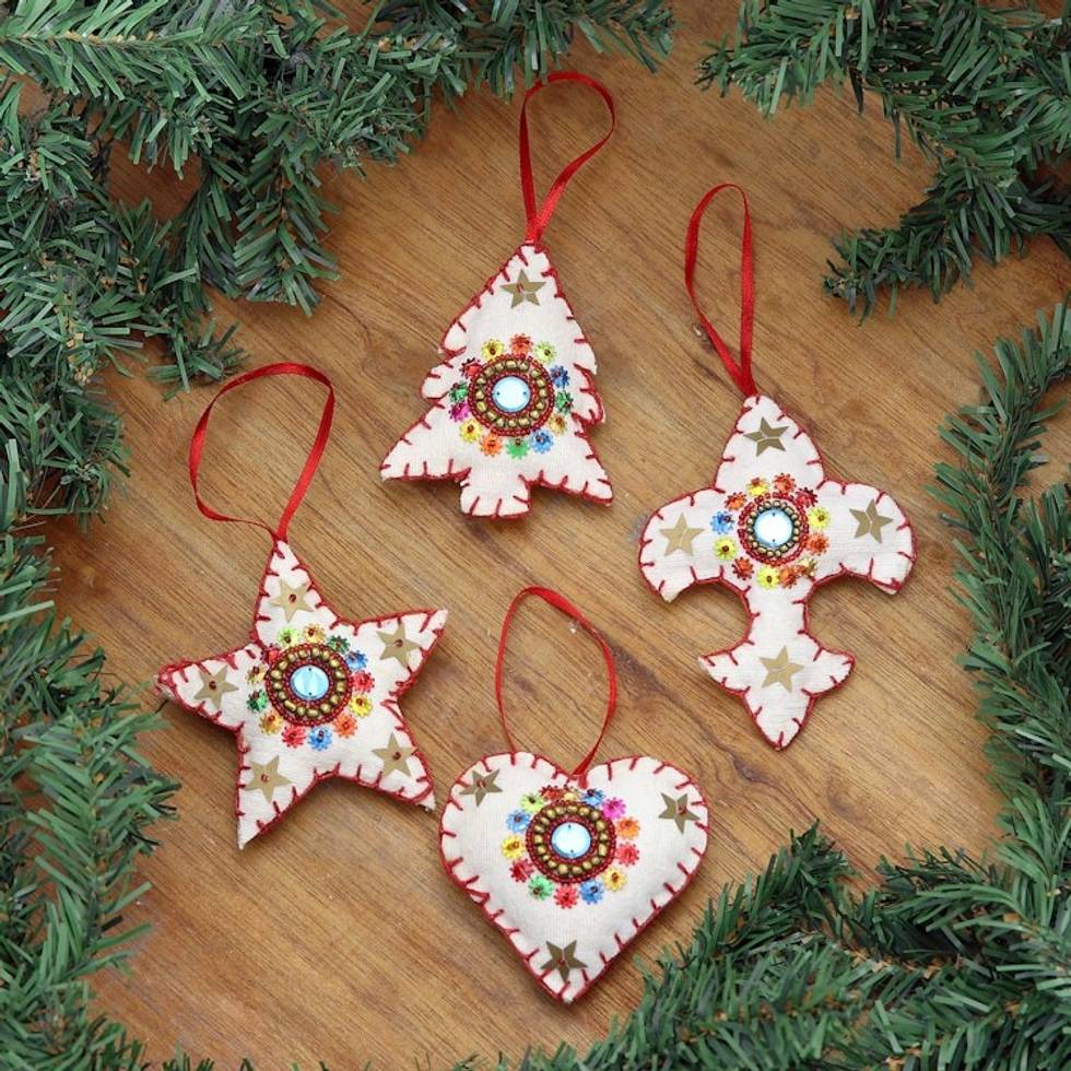 Handmade Beaded Wool Christmas Ornaments set of 4 'Christmas Charms' Item ID: 2669923979