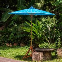 Handmade Blue Cotton and Bamboo Garden Umbrella 'Happy Garden in Turquoise' Item ID: 2671802126