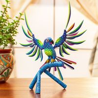 Handmade Blue Parrot Alebrije Sculpture from Mexico 'Perky Blue Parrot' Item ID: 2671807954